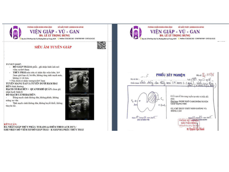 • Hai nhân thùy phải: TI-RADS 4 (4.4 điểm)