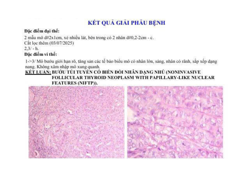 Năm 2016, Tổ chức Y tế Thế giới (WHO) chính thức tái phân loại “Biến thể nang không xâm lấn của ung thư biểu mô tuyến giáp dạng nhú” thành NIFTP (Non-invasive Follicular Thyroid Neoplasm with Papillary-like Nuclear Features).