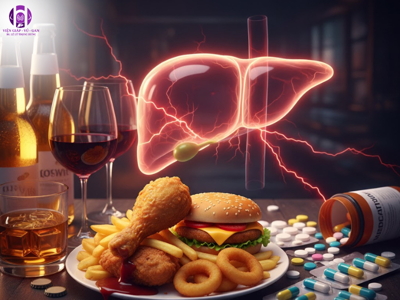 Cồn là yếu tố gây hại nhất đối với gan. Khi uống rượu, gan phải ưu tiên chuyển hóa ethanol, khiến độc tố tích tụ và làm tổn thương tế bào gan.
