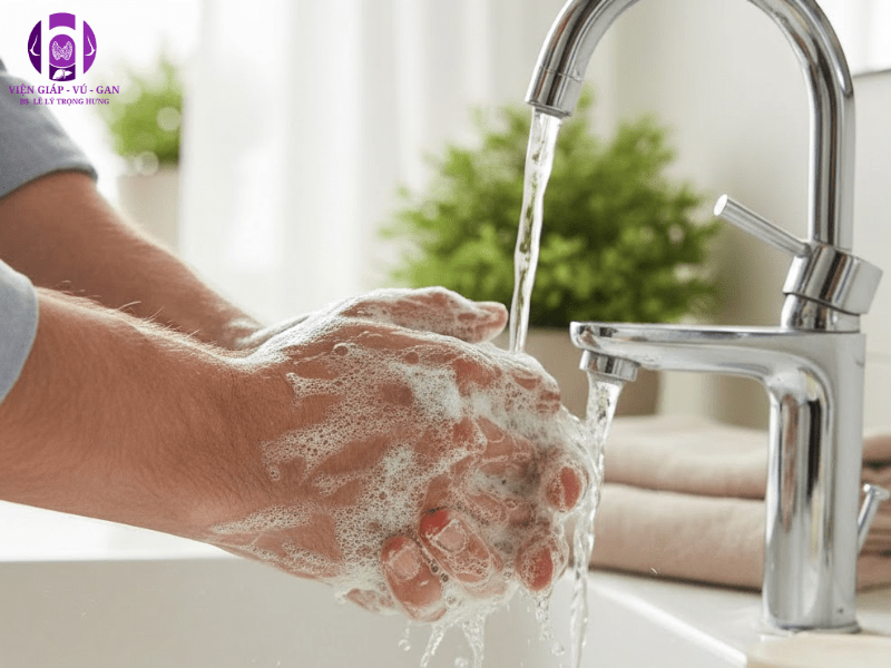 Giữ vệ sinh tay bằng cách rửa với xà phòng sau khi đi vệ sinh và trước bữa ăn