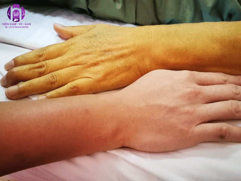 Sự thay đổi màu da sang vàng thường liên quan đến viêm gan.